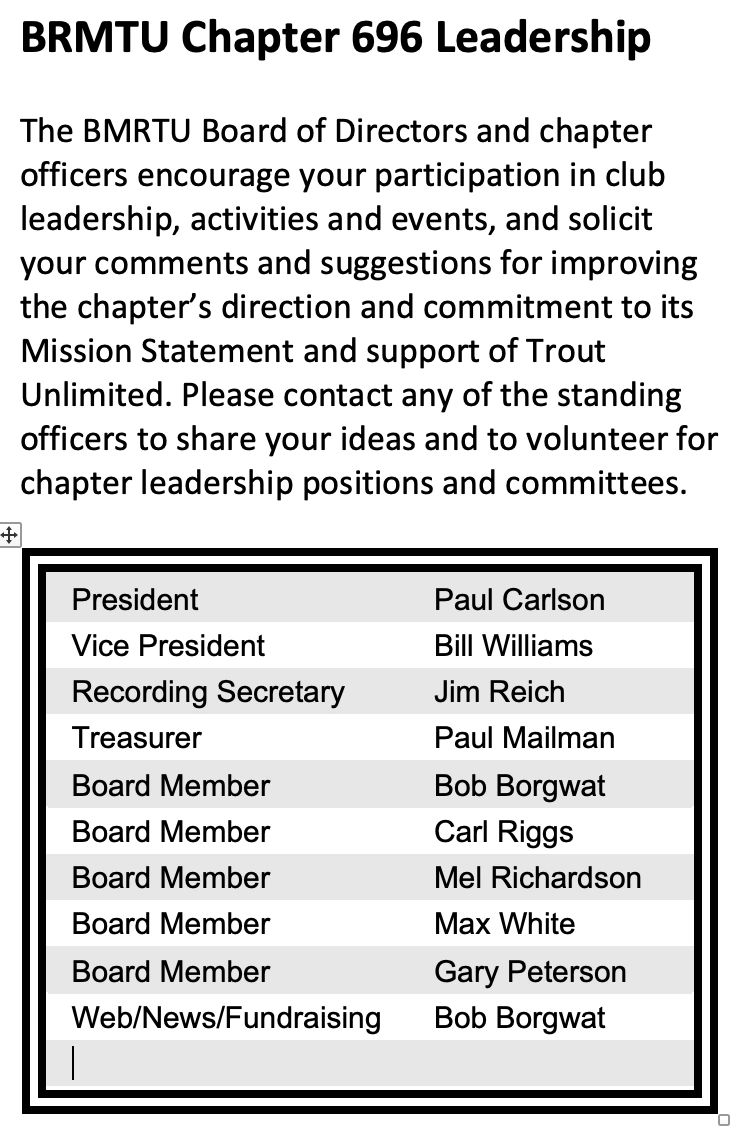 BRMTU meets the second Saturday of the month from 9 to 11 am, at Faith Presbyterian Church, 1349 Bluebird Rd Mineral Bluff, GA 30559. We gather early enough to keep the fishing stories short, but long enough to enjoy fun, fellowship, fishing and a special program every month.